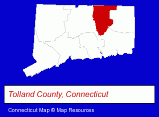 Tolland County, where Stafford Springs is located, is shown in red on theConnecticut map.