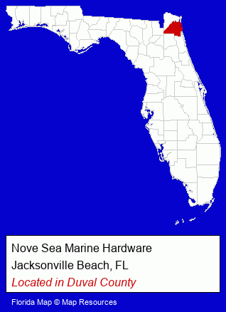Jacksonville Beach, Florida, the location of Nove Sea Marine Hardware, is shown on the interactive map below.