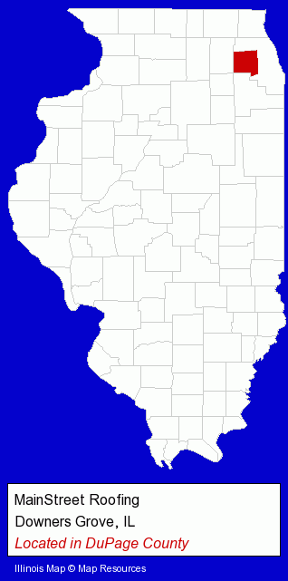 Downers Grove, Illinois, the location of MainStreet Roofing, is shown on the interactive map below.