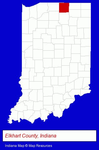 Elkhart County, where the city of Elkhart is located, is shown in red on theIndiana map.