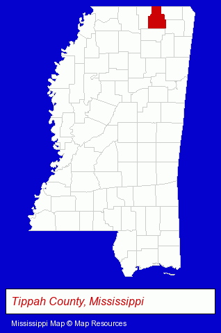 Tippah County, where the city of Ripley is located, is shown in red on theMississippi map.