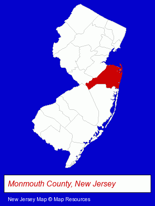 Monmouth County, where Ocean is located, is shown in red on theNew Jersey map.
