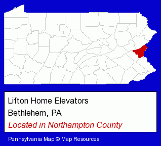 Bethlehem, Pennsylvania, the location of Lifton Home Elevators, is shown on the interactive map below.